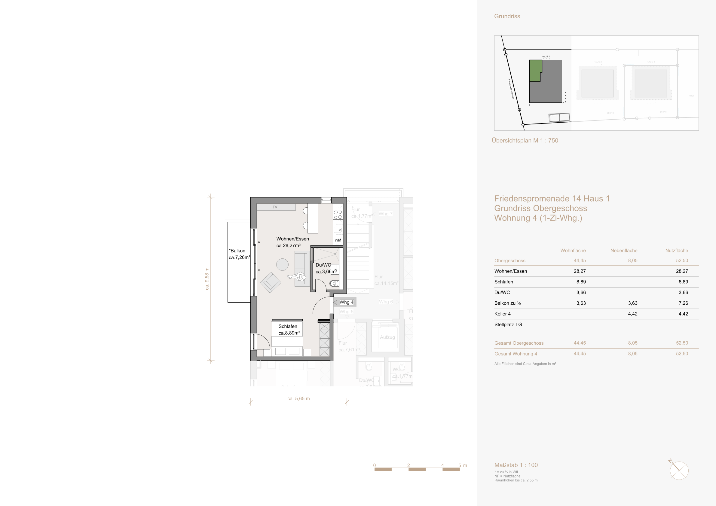 1 Zimmer Wohnung im Obergeschoss mit Balkon
