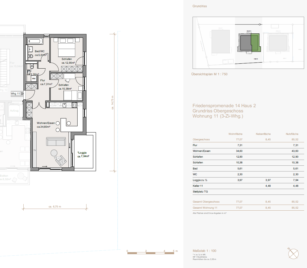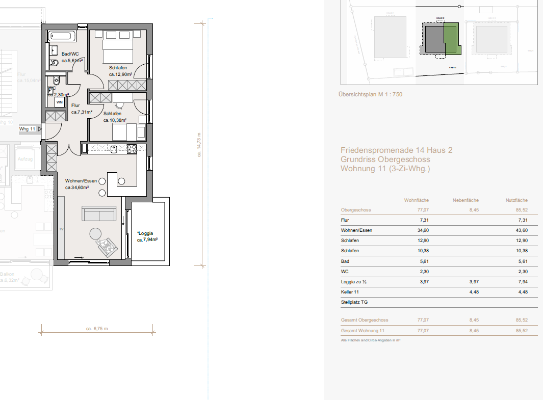 3 Zimmer Wohnung im Obergeschoss mit Loggia